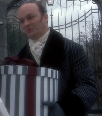 He is later seen at Cruella's home, when Horace and Jasper present the tiger skin coat to Cruella. His hands are shown to have a nervous shake as he pours them tea.