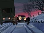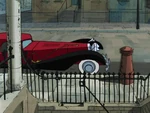 Model of Cruella's car alongside the model of Horace and Jasper's van