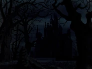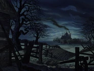 Not much is mentioned about the backstory of Hell Hall, but Colonel does bring up that nobody has lived there for years, and there were rumors about the mansion being "haunted, or bewitched, or some such fiddle faddle". This de Vil mansion looks like what the castle and cathedral that the original de Vil intended to build in the book. Unlike the book, the Radcliffes/Dearlys do not move there in the second film, instead preferring a farm. The late owner only appears in a portrait painting inside the living room.