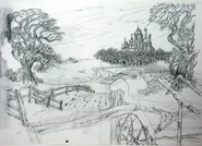 Hill Hall was once an ordinary farm house originally owned by a farmer named Hill, who suddenly got into debt. The property was then sold to an ancestor of Cruella de Vil. The first De Vil intended to raze the farm house down and convert it into half a castle and a cathedral. It begun by creating an enormous iron gate and a folly. The house got it's infamous name "Hell Hall" from many rumors of chaotic incidents that happen shortly after the house was built. One night, several villagers rallied towards the house with pitchforks and torches in an attempt to burn the house down. As the villagers arrived at the gates, a thunderstorm broke out and the gates violently open. The first De Vil came out of the gates driving a coach while emitting blue fork lightning and perished in front of the fleeing villagers. The house stood empty for thirty years. Several people rented the house but never stayed. However, the last member of the family, Cruella de Vil owned the property but never stayed there. When she owned it, she had the entire place painted black, while the interiors were painted with a dark burgundy red color. Her henchmen Horace and Jasper Badun stayed in it as the caretakers of the house. While Cruella offered to sell the house to the Dearly's at her dinner party, The house was also intended to be used as a Dalmatian Fur Farm. After the De Vil's fled from London to get away from debts, it was bought by the Dearly family.