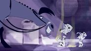 With Pearl searching out side (the other pups, disguised as Diesel, keeping her distracted), Da Vinci uses her spray can to keep the door from closing, so she, Dolly and Diesel can escape through the front entrance. During this, they over hear Pearl claim a cat reported that it was the Dalmatians. Unknown to the other Dalmatians, they are being recorded from afar. When Pearl realizes the hole in the wall is actually painted on, she accidentally trips on Snowball's (who had been locked up for getting Pearl caught up in her leash earlier) leash, allowing the Pomerania to squeeze through the bars of her cell and be dragged back to her human, with her retracting leash.