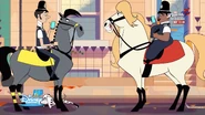 Pearl first appeared in "May Contain Nuts" having heard the burglar alarm of a grocery store and seeing Sid and a reluctant Dolly on the roof absconding with stolen nuts from the store. She orders them to halt in the name of the law and when they try to run, she engages a pursuit of them on hoof. She loses them but later manages to track Sid down after the nuts he stored in the church clock tower overflowed and sent him flying out of the church building right into her waiting hooves to be arrested.