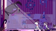In "Poetry Scam", Diesel is able to use his cone to pick up Pearl talking, where it seems she has spotted Mister Fuzzy with an apple and "takes it in to custody" by eating it from his hand.